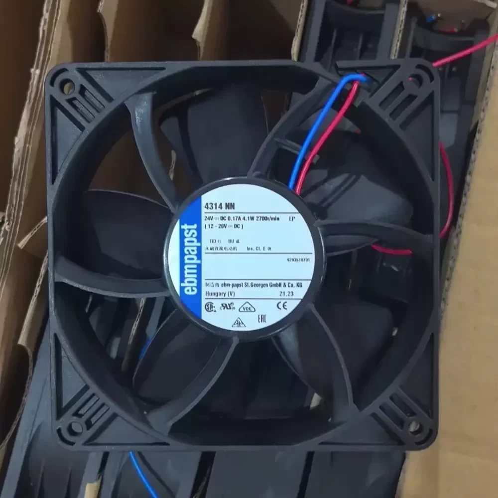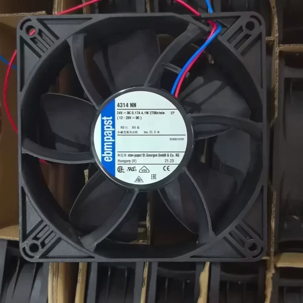 The ebmpapst 4314NN represents the industry standard for 120 mm DC axial fans, delivering reliable thermal regulation for sensitive electronic components. Engineered in Germany, this model is specifically optimized for inverter heat dissipation and high-density industrial enclosures. With a standard 120 x 120 x 38 mm form factor, it integrates seamlessly into most industrial rack systems and power supply units. The 24 VDC motor is designed for high efficiency, consuming only 4.1 W while maintaining consistent airflow. This unit features a dual-wire connection (Red/Blue) for simplified installation. As an original ebmpapst component, it offers superior MTBF (Mean Time Between Failures) compared to generic alternatives, making it a critical spare part for maintaining uptime in automated production lines and power conversion systems.