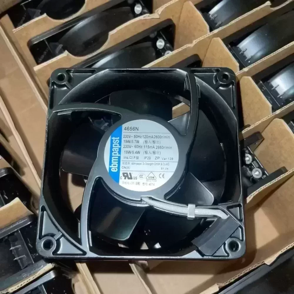 The new original German EBM-Papst 4656N cooling fan, 230V voltage, 19W/5.7W and 18W/5.4W power options. 12038 specification, all-metal shell, suitable for heat dissipation in industrial chassis. Manufactured in Germany, quality guaranteed. Spot inventory, the price can be negotiated, it is more favorable to pick up in the same city, and it can be sent to SF Express in other places.