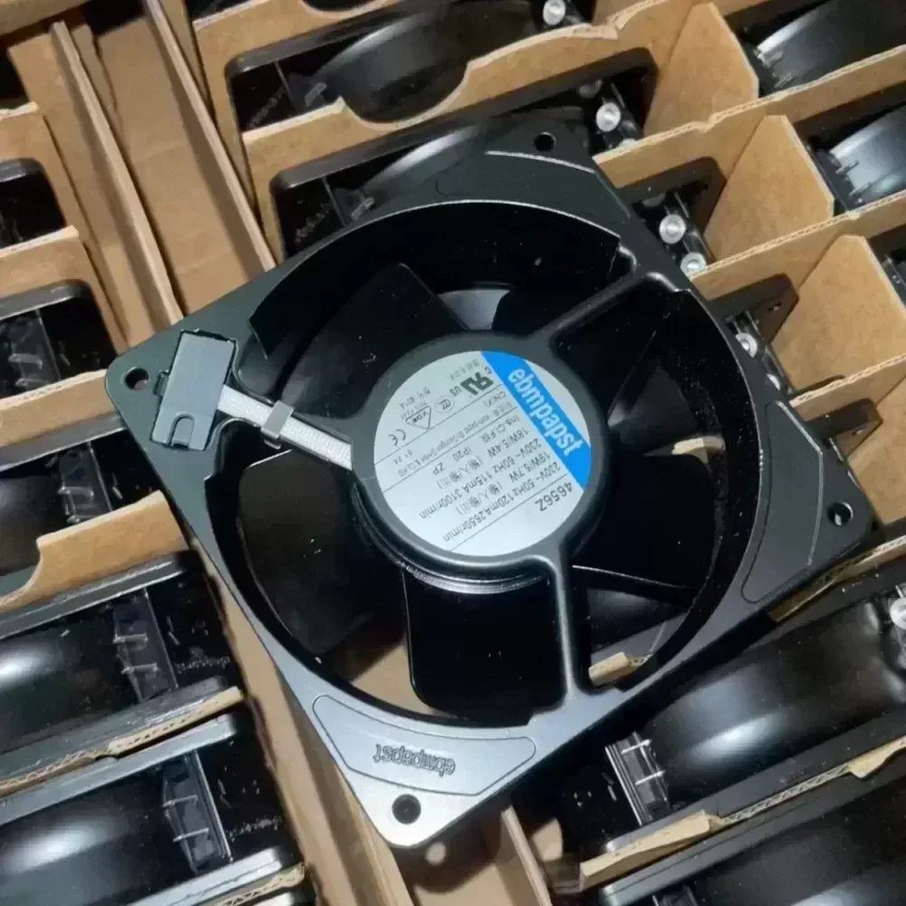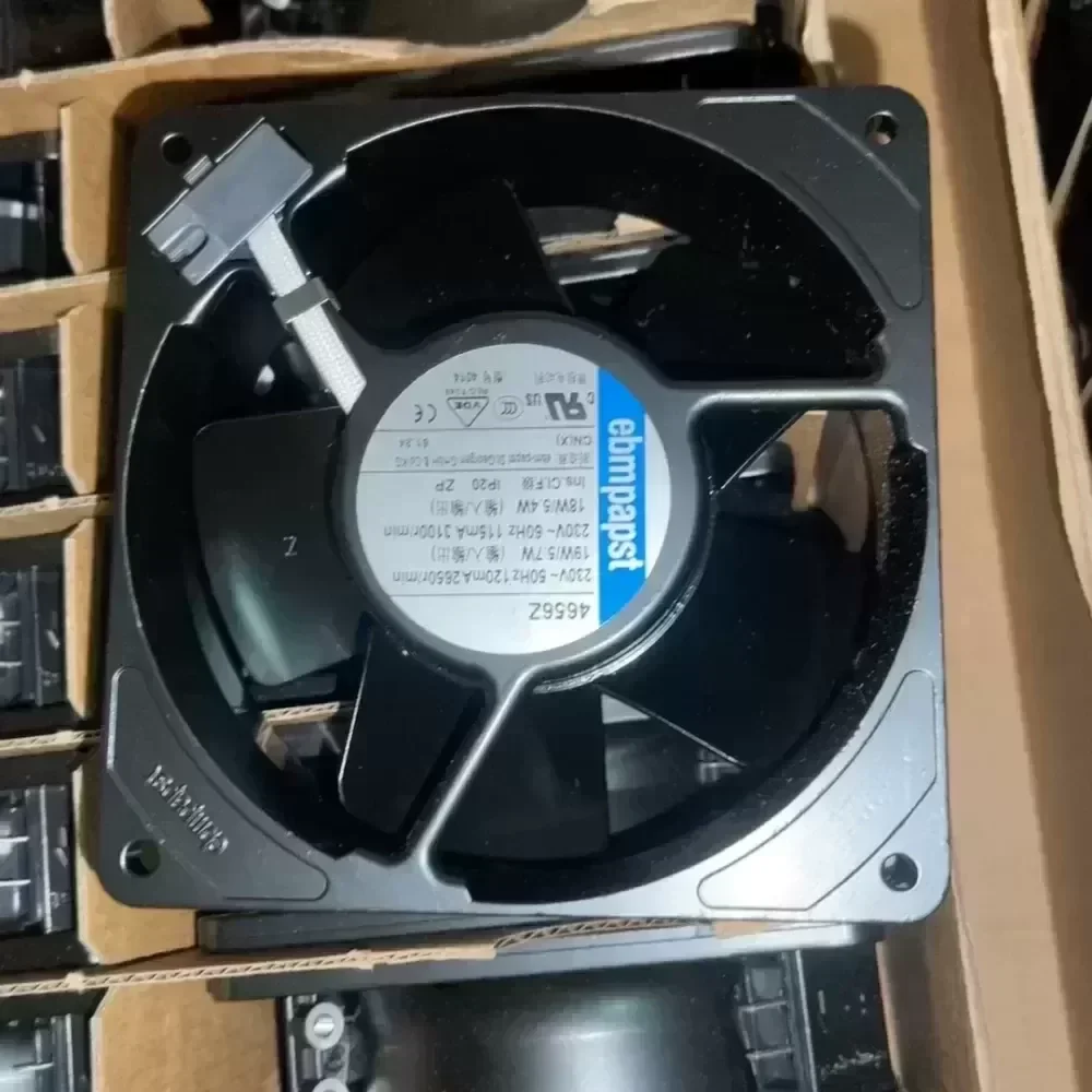 Brand new original German EBMPAPST fan, 4656Z/G01 model, 120x120x38 mm, 230V voltage, 19W power, all-metal axial fan, good high temperature resistance and heat dissipation effect, industrial-grade quality, suitable for chassis cooling, multiple units in stock, price can be chatted, self-picked in the same city, free shipping in other places, welcome consultation