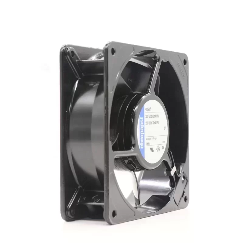 Industrial Application: The ebmpapst 4850Z is specifically designed for low-noise thermal management in sensitive electronic enclosures and telecommunications racks. Its 26 dBA acoustic profile solves the critical problem of noise pollution in office-integrated server environments while maintaining a consistent 100 m³/h airflow. The die-cast aluminum frame acts as an integrated heat sink for the motor, extending the lifecycle in continuous 24/7 operations. This unit is a direct replacement part for high-density cabinet cooling where Technical Compatibility and Original Engineering standards are required to maintain system warranties and safety certifications. Lead Time is optimized for critical MRO supply chains.