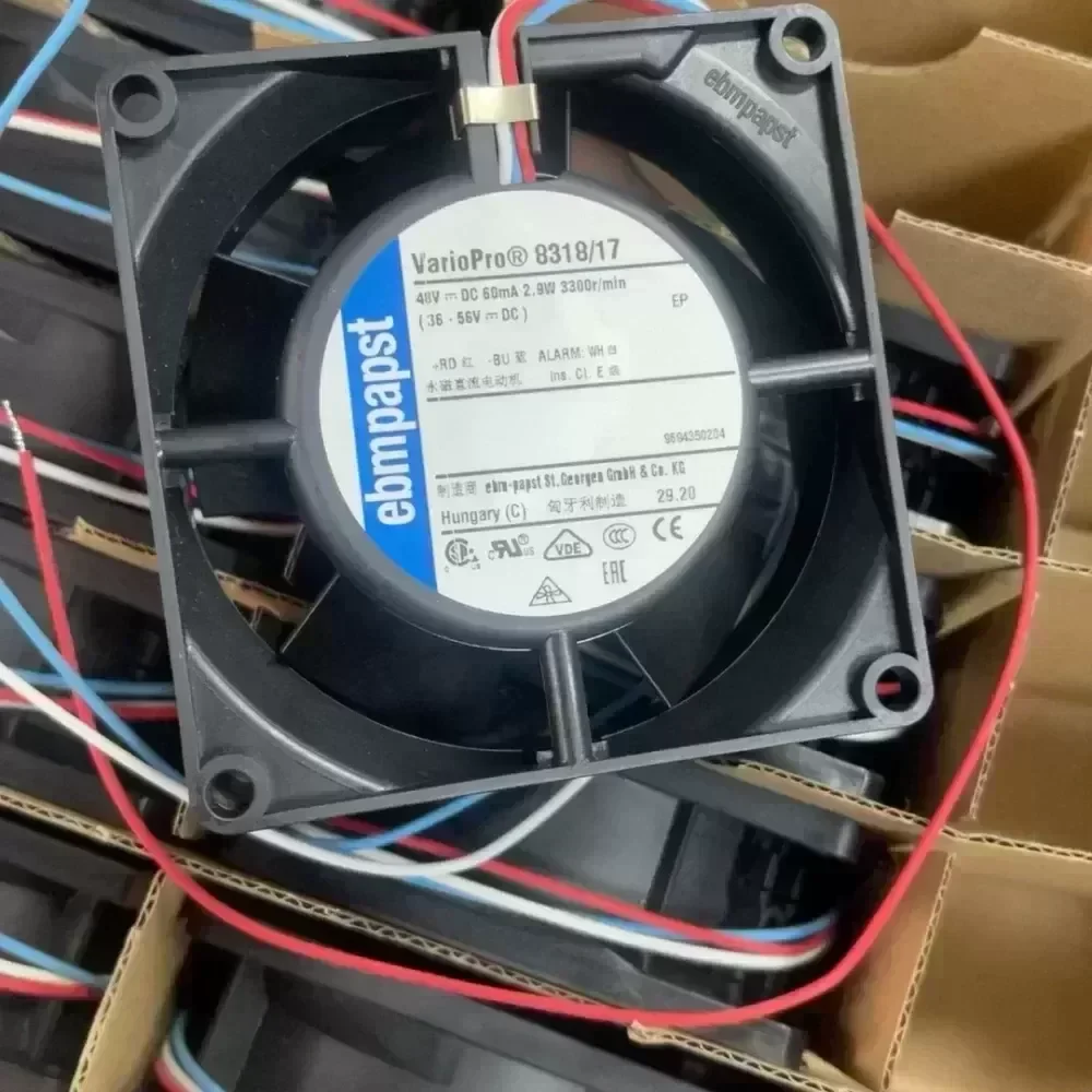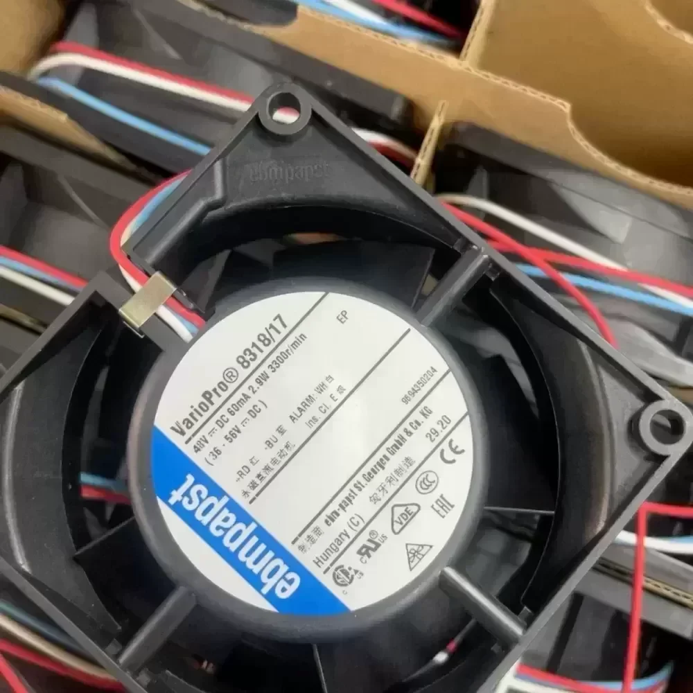 New original ebmpapst fan 8318/17, 48V DC, 60mA, 2.9W, 3300r/min. fan,Real shots are as shown in the picture, and the performance is stable and without maintenance. Suitable for computer cooling or other industrial uses. Friends who need it can contact me!