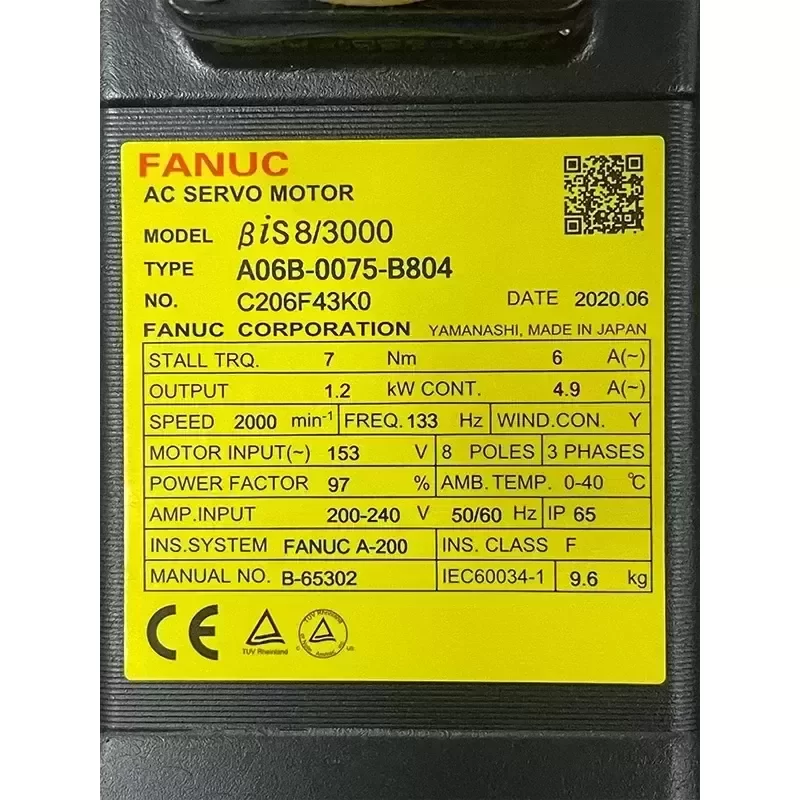 A06B-0075-B804 FANUC CNC AC Servo Motor with Ethernet Communication 100% Original Brand From Japan