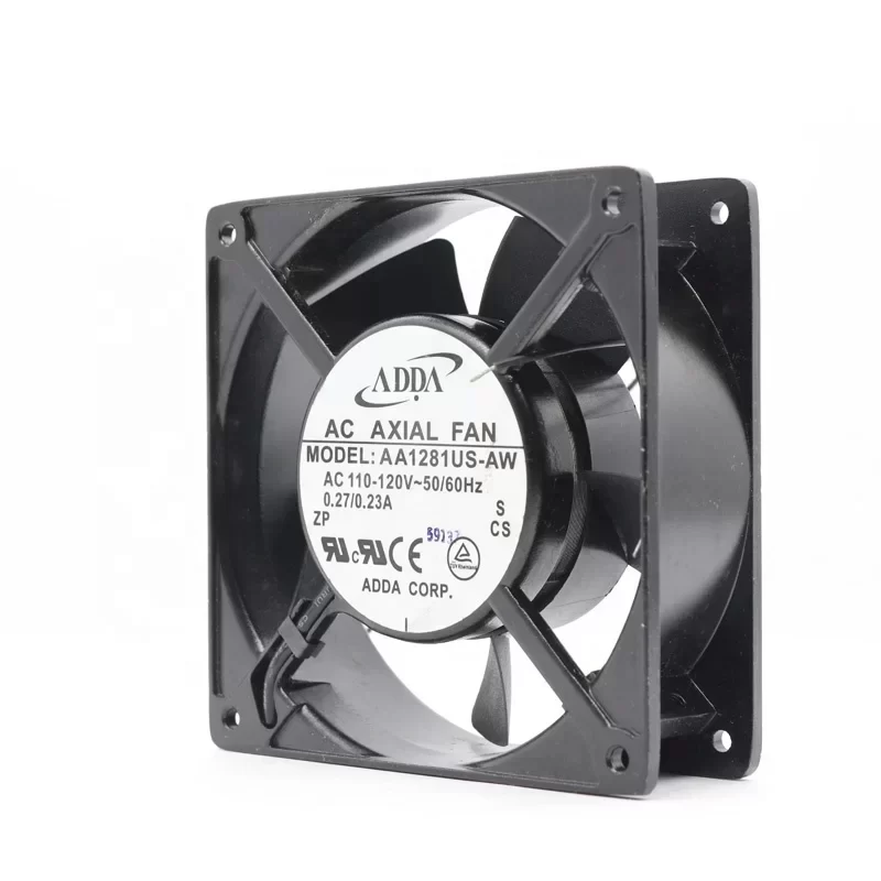 The ADDA AA1281US-AW is a high-performance industrial axial cooling fan engineered for reliable thermal management in heavy-duty applications. This 120 x 120 x 38 mm unit operates on a 115 VAC power source, drawing 0.27 A to deliver a robust airflow of 96 CFM. Designed with a dual ball bearing system, the AA1281US-AW offers superior durability and a significantly longer service life compared to sleeve bearing alternatives, making it ideal for continuous 24/7 operation in critical environments.