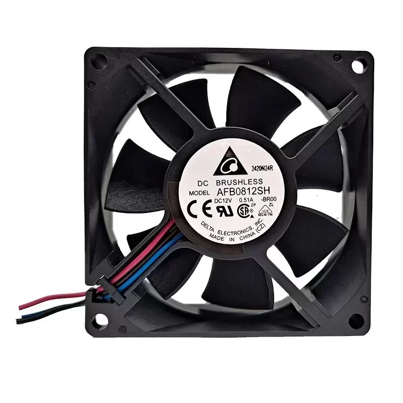 Delta Electric OEM Axial Flow Cooling Fan AFB0812SH-BR00 80x80x25.4MM 12V DC 46.62CFM 4000RPM Double Ball Bearing Plastic