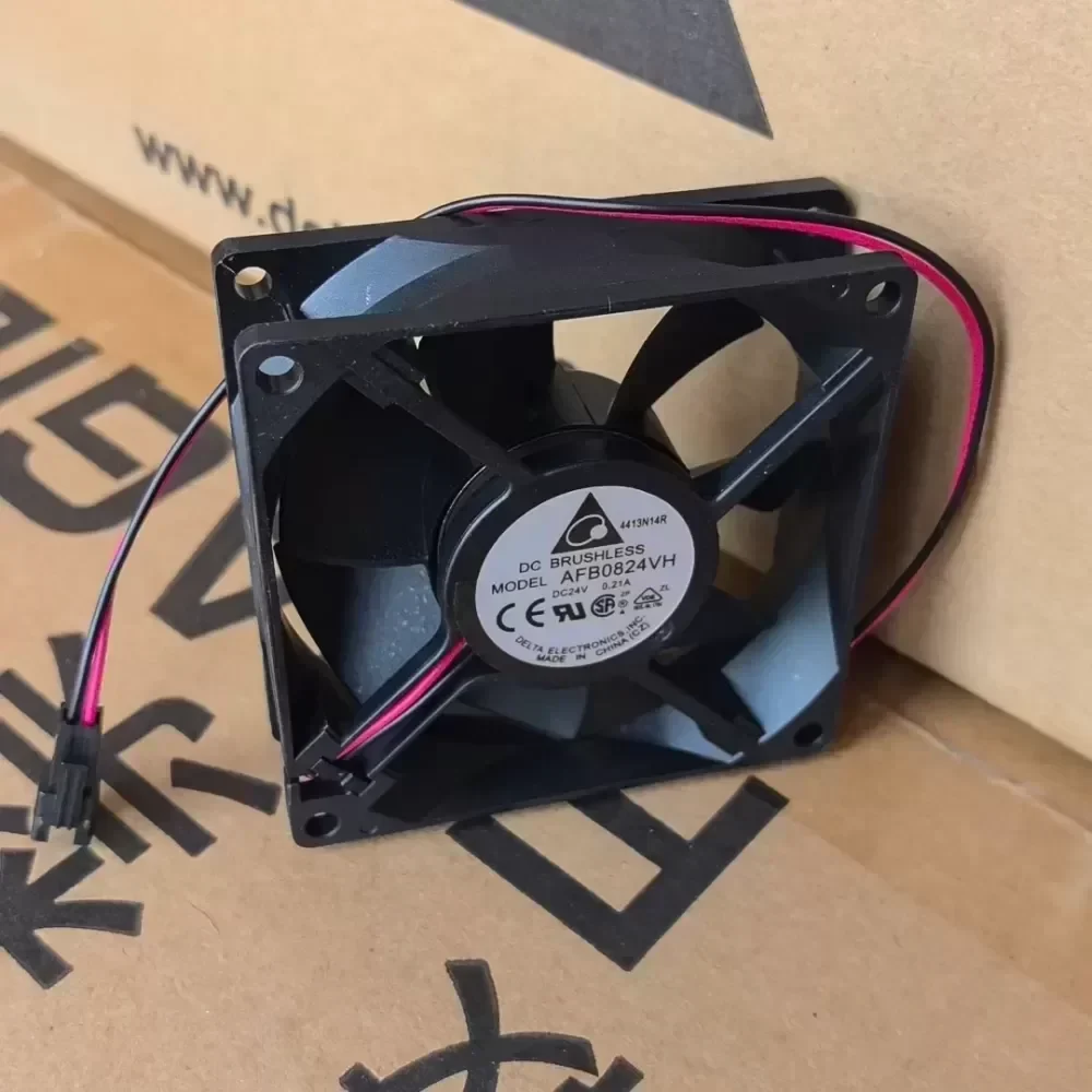 The Delta AFB0824VH is a high-performance 80 mm axial DC fan engineered for demanding industrial thermal management. This specific model utilizes a dual ball bearing system, ensuring extended operational life and stability in high-temperature environments compared to sleeve bearing alternatives. Operating at a nominal 24 VDC with a rated current of 0.21 A, it provides the high static pressure and airflow necessary for cooling sensitive electronics.