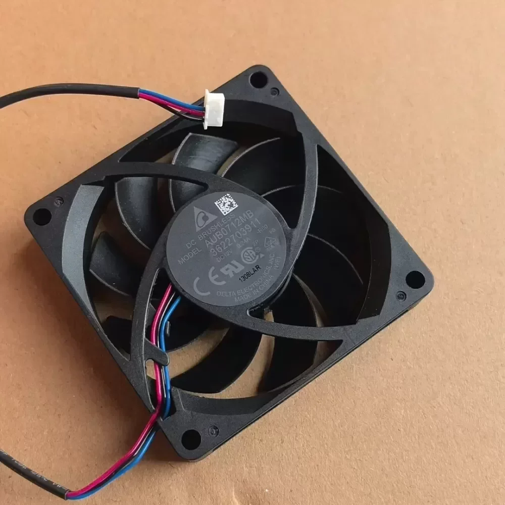 The Delta Electronics AUB0712MB is a high-performance 70mm axial cooling fan engineered for continuous industrial operation and thermal management. Utilizing a robust double ball bearing system, this unit provides superior longevity and mechanical stability compared to standard sleeve-bearing alternatives, making it ideal for 24/7 duty cycles. It is specifically designed for high-density chassis cooling and power supply units where a precise balance between static pressure and acoustic efficiency is required. The 3-wire interface facilitates integrated system monitoring by providing a tachometer signal for real-time RPM tracking. This component is sourced as an original engineering part, ensuring compatibility with OEM specifications for server and workstation maintenance.