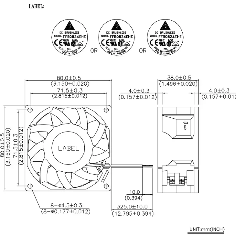 Delta FFB0824EHE-X03 24V DC 0.75A Ball Bearing 80*80*38mm 5700RPM 80.16CFM Industrial Electric Plastic Blade Exhaust Fan OEM ODM