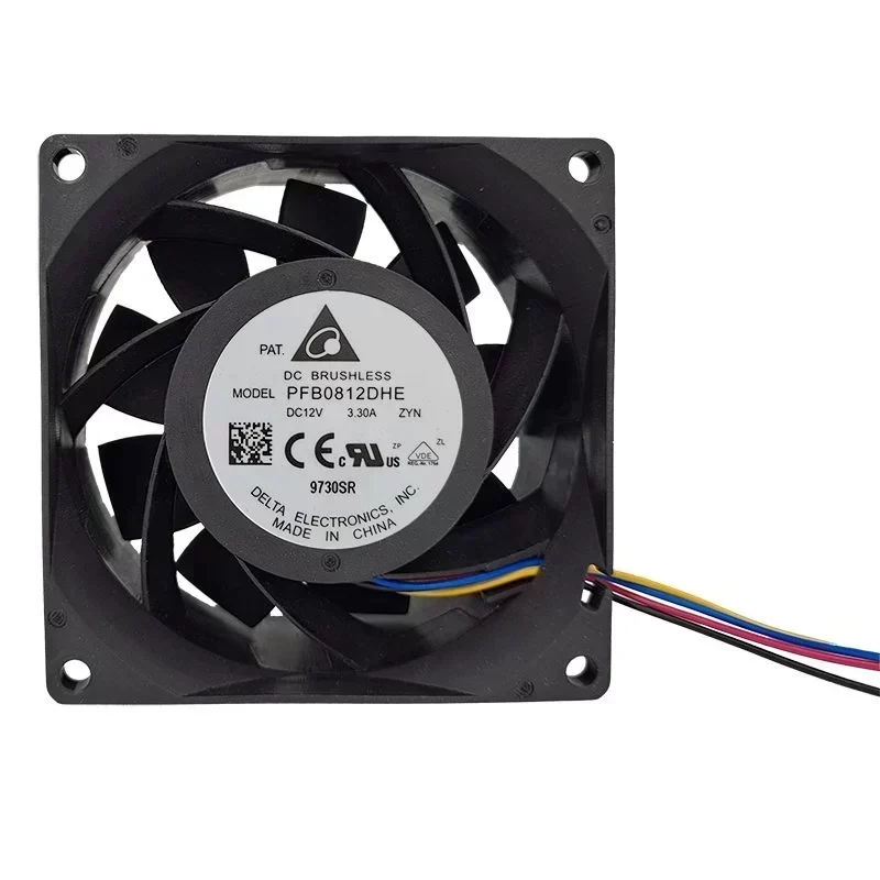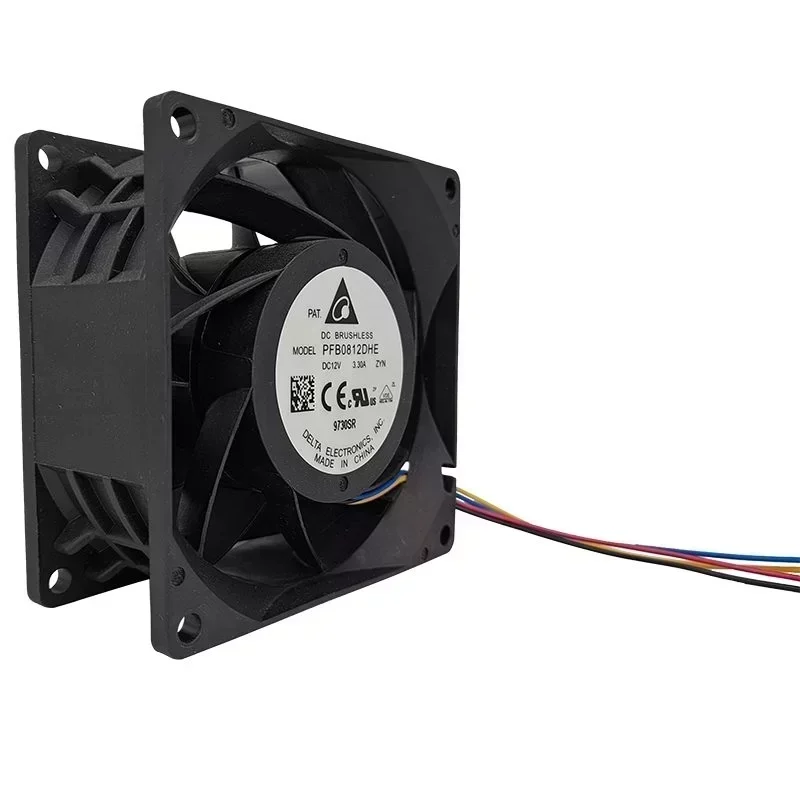 Delta PFB0812DHE-ZYN 12V DC 3.3A Ball Bearing Industrial Electric Axial Flow Plastic Blade Exhaust Fan 80*80*38mm 9000RPM