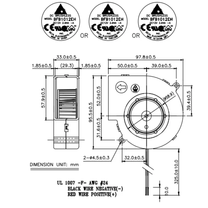 DeltaBFB1012EH-A Original Electric Power Centrifugal Blower Fan 12V 2.94A 97*94*33 Ball Bearing Plastic Blade Flow OEM