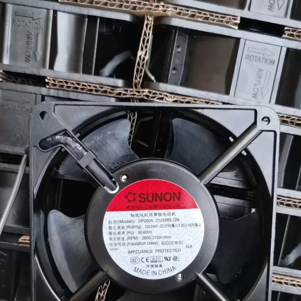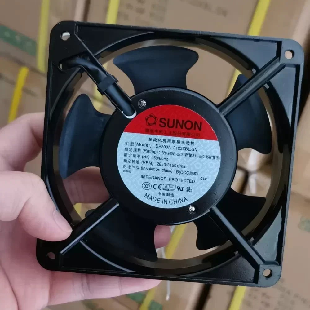 The Sunon DP200A 2123XBL.GN is a high-performance AC axial fan engineered for rigorous thermal management in industrial enclosures and server environments. Manufactured by Sunonwealth Electric Machine Industry, this 120mm unit features a robust aluminum die-cast frame and a precision ball bearing system designed to sustain continuous operation under high thermal loads. The specific 2123XBL.GN configuration denotes a 220-240V AC input, lead wire termination, and RoHS-compliant construction. This component adheres to Original Engineering standards, ensuring optimal airflow efficiency and structural integrity for critical cooling infrastructure.