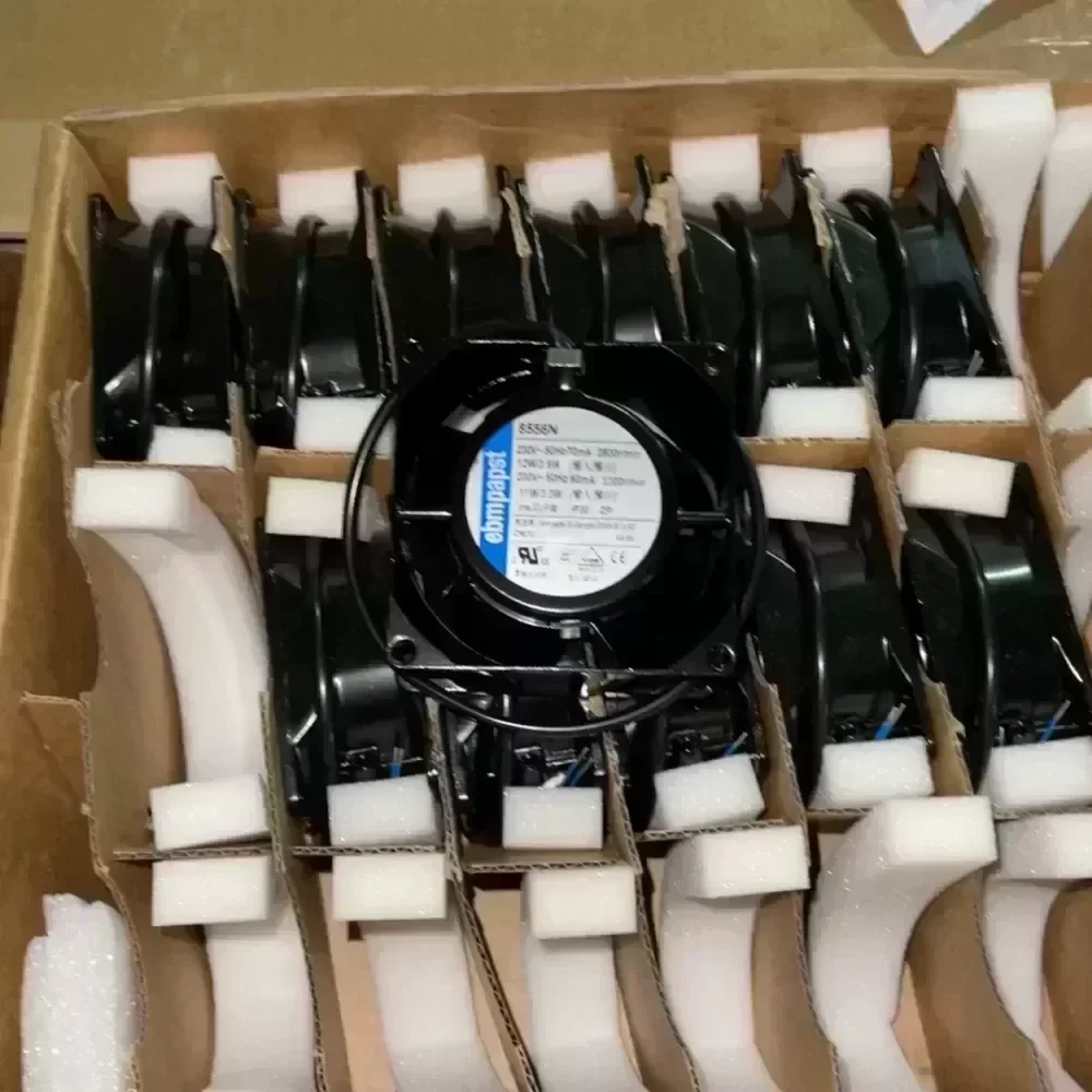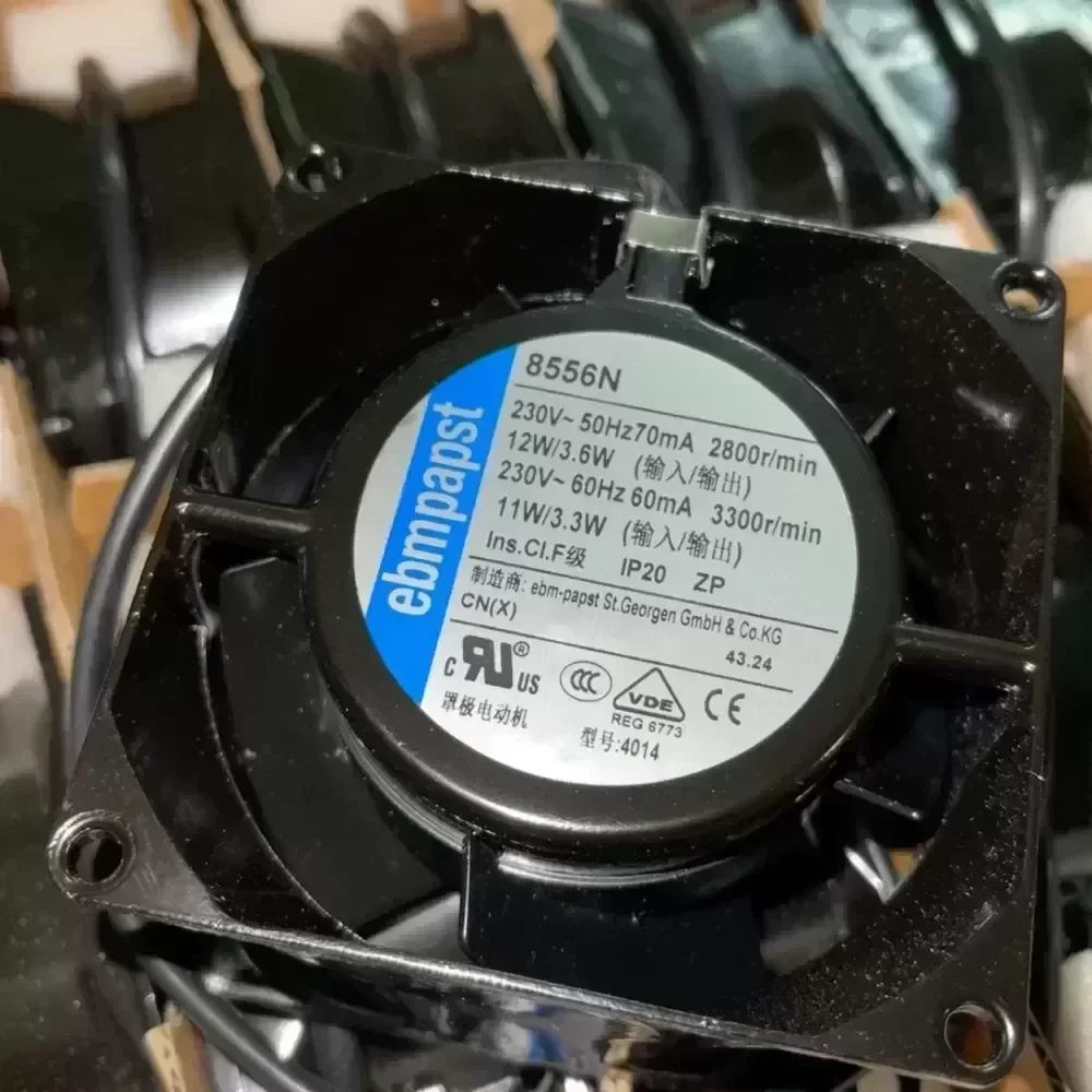 German EBM-Papst 8556N fan, new unused, high-temperature resistant all-metal design. Supports 230V voltage, rated power of 12W/3.6A or 11W/3.3A, and a maximum speed of 3300r/min. IP20 protection rating is suitable for a variety of industrial applications. For inventory update reasons, friends who need it can contact me!