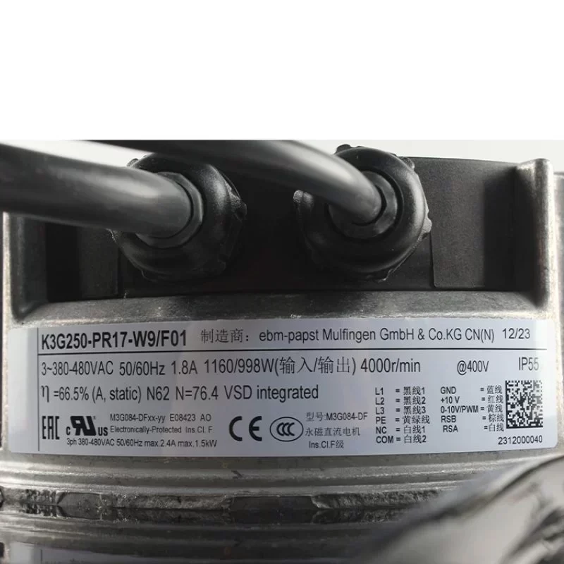 Ebmpapst K3G250-PR17-W9 400V AC 1.8A 4000rpm Cooling Fan Industrial Centrifugal Fan for Ventilation System