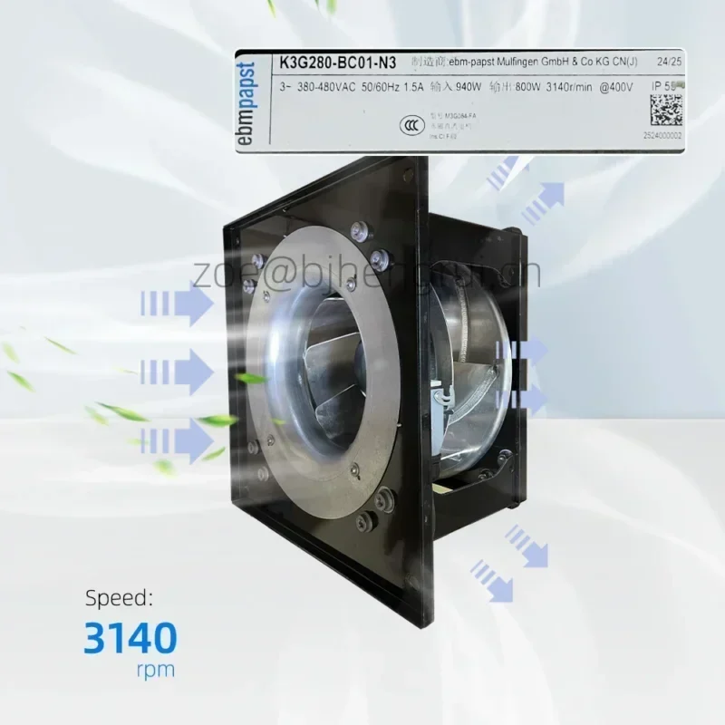 ebmpapst K3G280-BC01-N3 400V AC 940W 1.5A 3140RPM Spindle Servo Motor Traffic Track Photovoltaic Cabinet Centrifugal Cooling Fan
