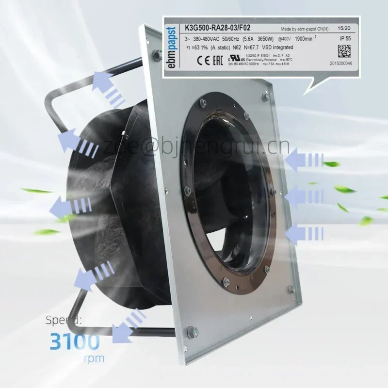 ebmpapst K3G500-RA28-03 400V AC 3600W 5.5A 1900RPM AHU Air Handling Unit HVAC Air Conditioner Cooling Fan K3G500-RA28-03/F02