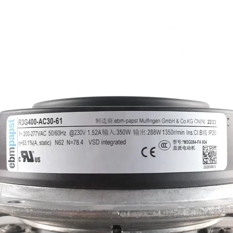 Ebmpapst R3G400-AC30-61 230V EC 380W 400mm Cooling Fan Industrial Centrifugal Fan for air Purifier HVAC