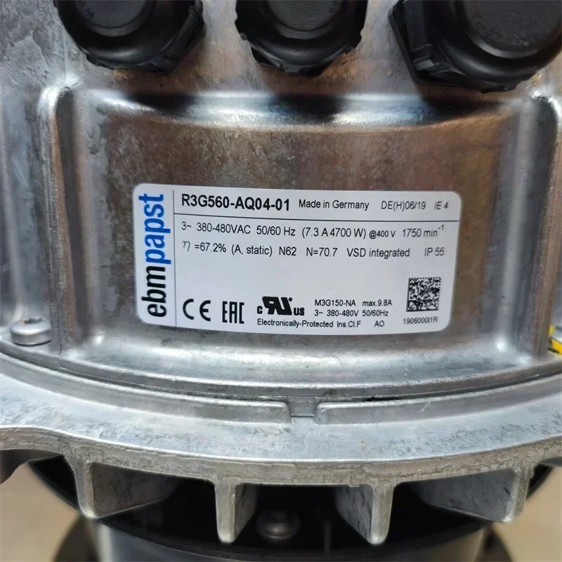 ebmpapst R3G560-AQ04-01 400V AC 50/60HZ 4700W 7.3A 1750RPM 11640m3/h IP 54 Ball Bearing EC Centrifugal Cooling Fan