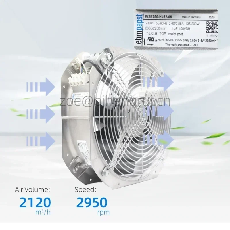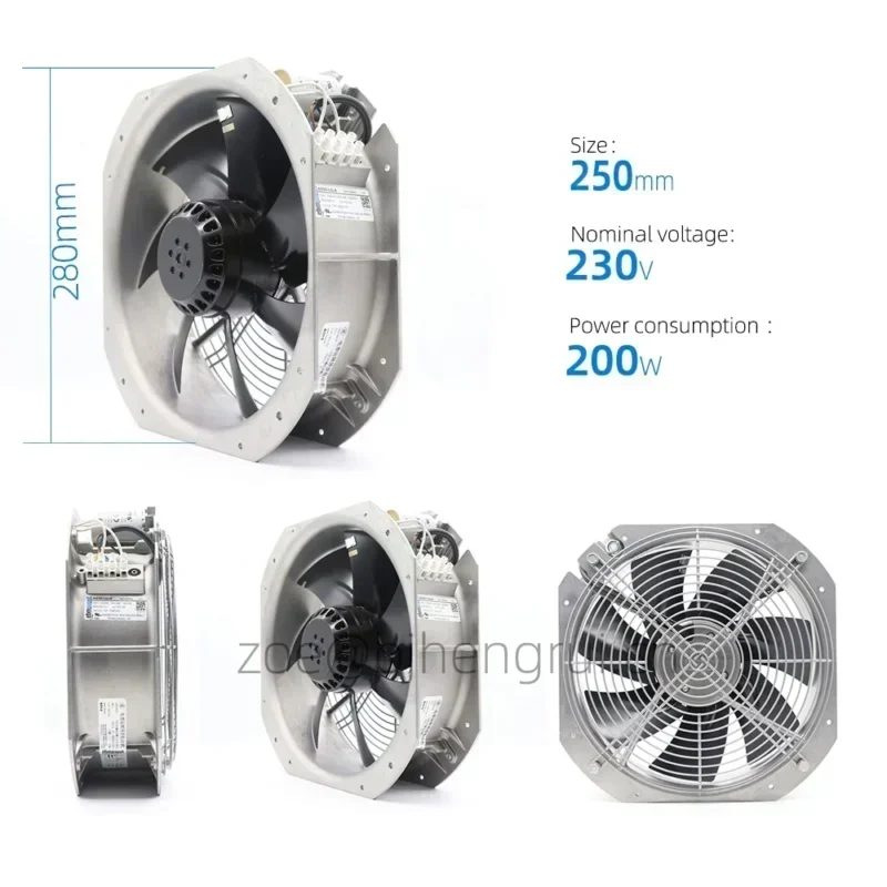 ebmpapst W2E250-HJ52-06 28080 280X280X80mm 230V AC Full Metal High Temperature Rittal Cabinet Axial Cooling Fan Wind Power