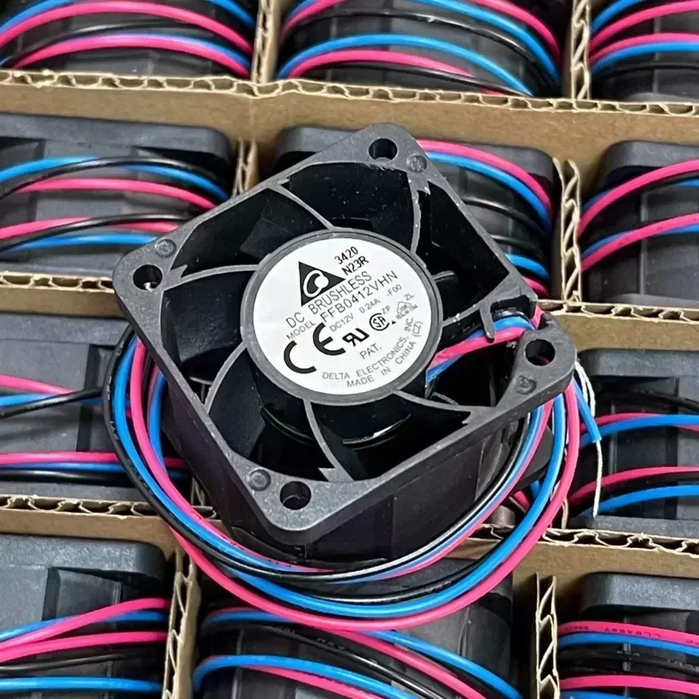 Brand new authentic Delta DC brushless fan FFB0412VHN-F00, 12V voltage, 0.24A current, 40x40x28 mm size. Suitable for various computer cooling needs, silent design, long-term use worry-free. Brand new and unused, functional intact and without maintenance.