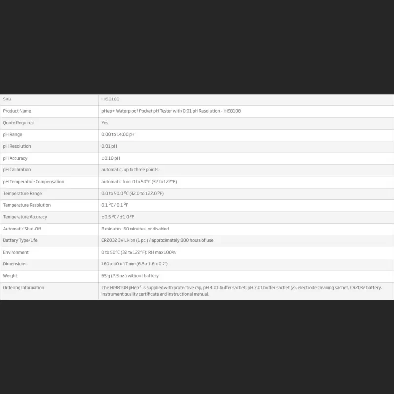 HANNA Hi98108 Pocket PHep and pH Tester
