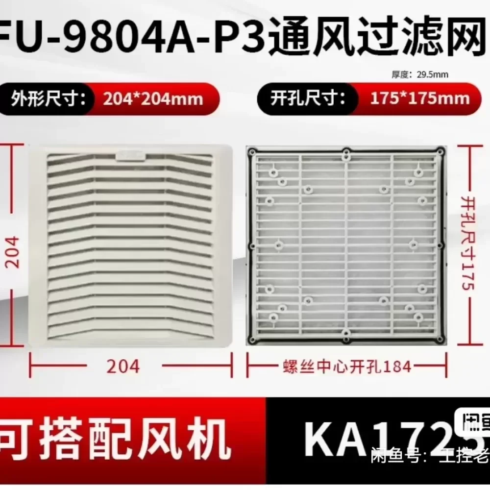 The KAKU FU-9804A-P3 is a high-performance industrial ventilation filter assembly designed for precision thermal management in electrical enclosures and control cabinets. This original KAKU component provides a robust barrier against airborne contaminants while ensuring optimal airflow for sensitive electronic systems. Engineered for seamless integration, the FU-9804A-P3 is specifically optimized for use with KA1725 series axial fans, creating a complete cooling solution for demanding industrial environments.