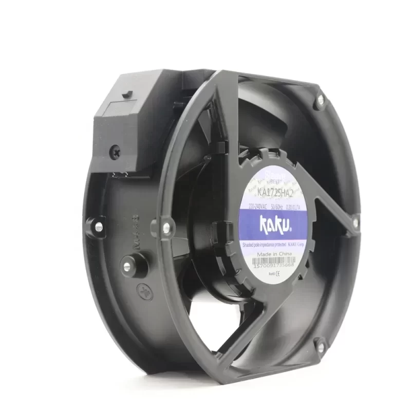 Application: The KAKU KA1725HA2-B is engineered for critical thermal regulation in high-capacity UPS units and industrial frequency inverters. Its IP55 rating ensures operational stability in environments prone to dust and moisture ingress, preventing localized hotspots that lead to premature semiconductor failure. The dual ball bearing system supports continuous 24/7 duty cycles, maintaining system uptime in mission-critical power distribution cabinets.
