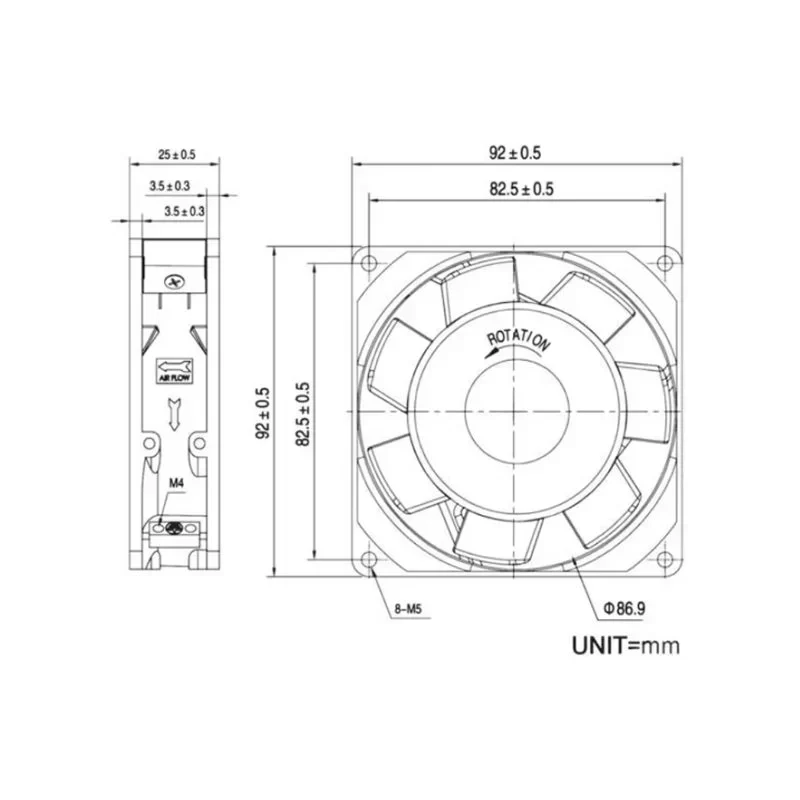 KAKU KA9225HA2 220/240V 0.10/0.09A 51/62.9m3/h 1220RPM 20/18W Sleeve Bearing Refrigeration Axial Cooling Fan