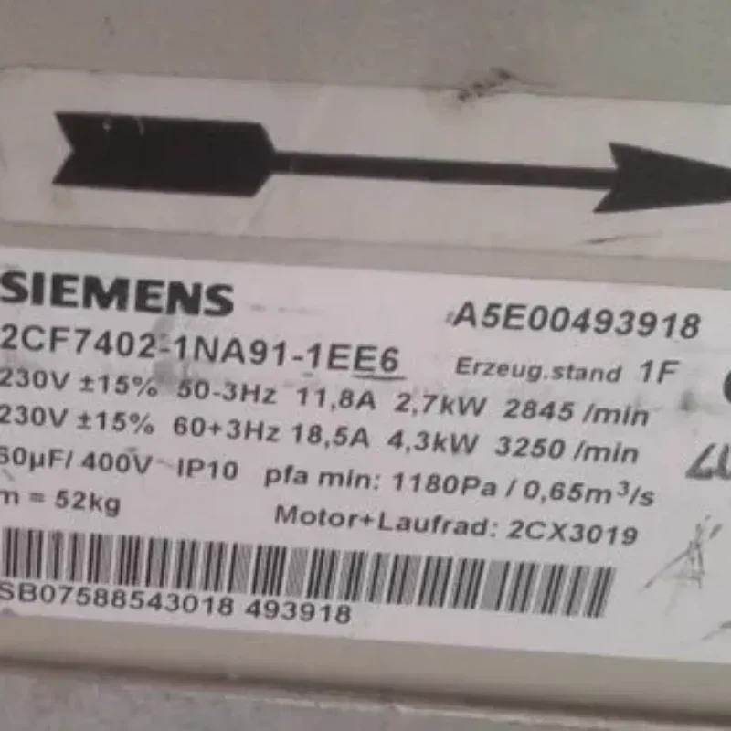 Mdexx 2CF7402-1NA91-1EE6 A5E00493918 400V AC Siemens 6SE70 Inverter High Power Centrifugal Blower Cooling Fan