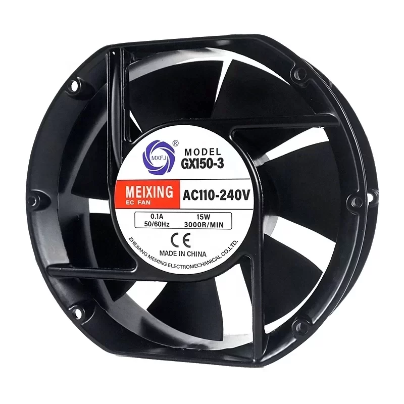 The MEIXING GX150-3EC is a high-performance axial flow fan engineered for demanding industrial thermal management and exhaust applications. This unit features a robust 172 x 150 x 51 mm die-cast aluminum shell, providing superior structural integrity and enhanced heat dissipation compared to standard composite housings. Designed with a wide-range input capability of 110 – 240 VAC, the GX150-3EC is optimized for global equipment deployment, ensuring compatibility across various international power grids without the need for additional voltage conversion.