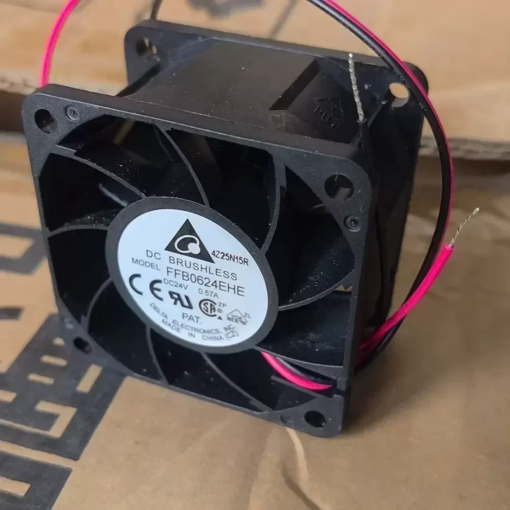 The Delta Electronics FFB0624EHE is a high-performance DC axial fan engineered for rigorous thermal management in industrial power electronics and automation systems. As part of the FFB series, this unit features a 60x60x38mm form factor, significantly deeper than standard 25mm fans, allowing for a high-torque motor and aggressive blade geometry designed to overcome high static pressure resistance. The ‘EHE’ designation indicates an Extra High-Speed configuration, utilizing a precision Dual Ball Bearing system to sustain operation at 8000 RPM, ensuring rapid heat dissipation for critical components. This model includes a 3-wire interface with a tachometer signal output for real-time speed monitoring and failure detection.