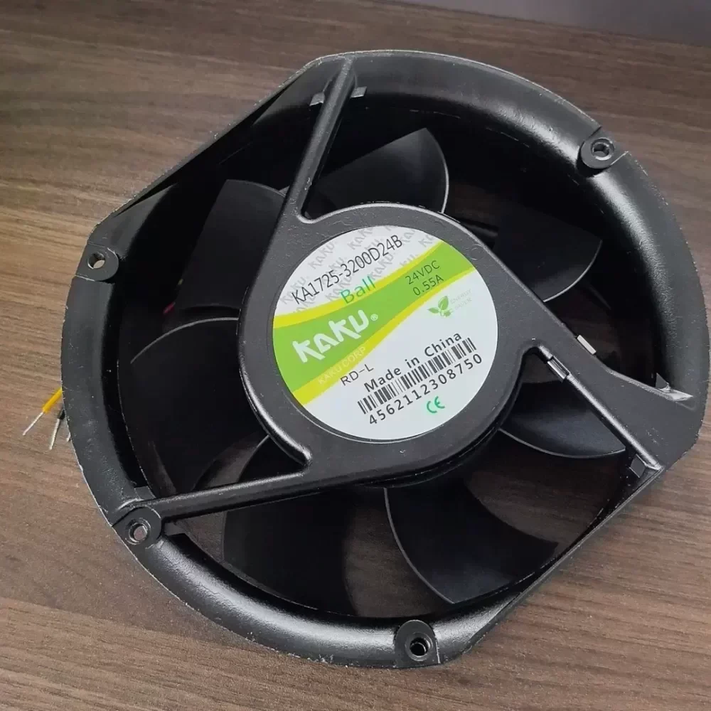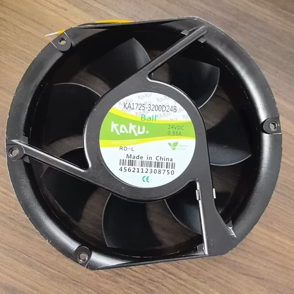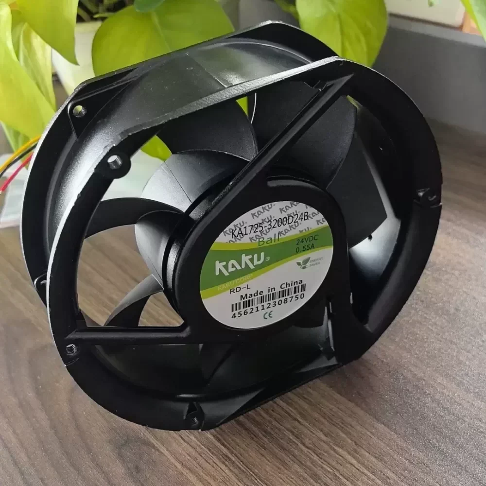 The KAKU KA1725-3200D24B RD-L is a high-performance industrial axial cooling fan engineered for demanding thermal management in power electronics and automation systems. This unit features a robust aluminum alloy housing paired with magnesium alloy fan blades, ensuring structural integrity and consistent airflow even in high-temperature environments where standard plastic components might fail or deform.