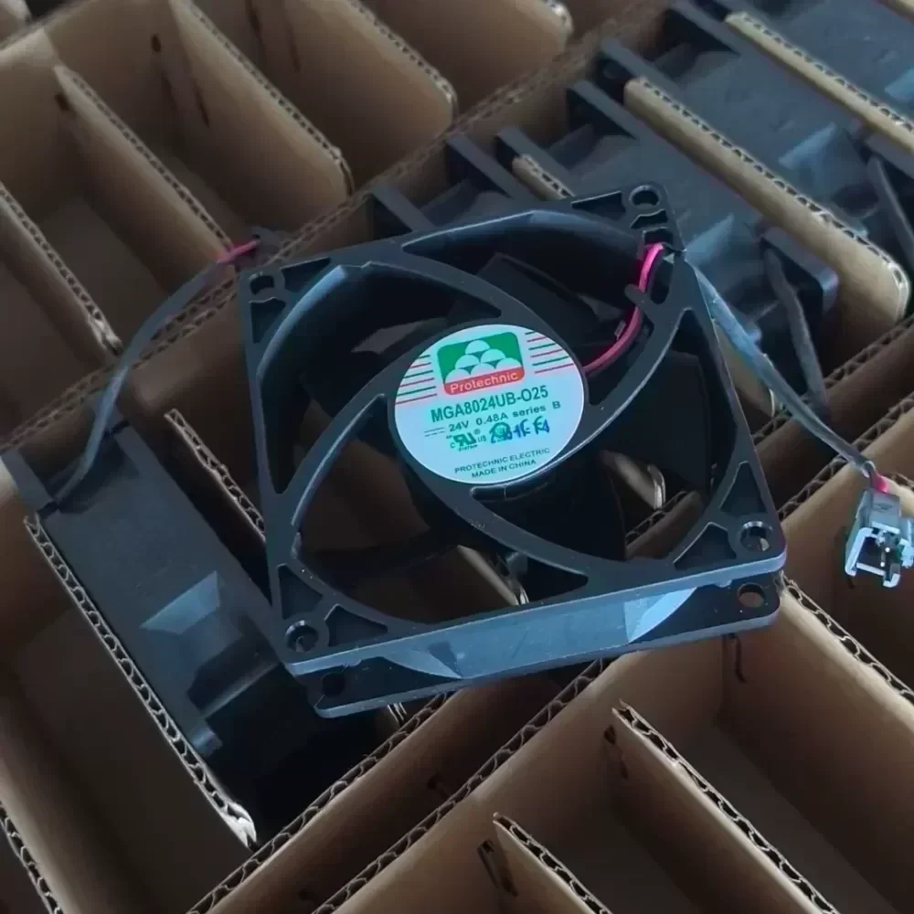 The Protechnic MGA8024UB-O25 is a high-performance DC axial fan engineered specifically for demanding thermal management applications requiring high static pressure and extended service life. This unit features Original Engineering design standards optimized for forced-air cooling in industrial electronics, utilizing a robust dual ball bearing system to ensure reliability under continuous load.