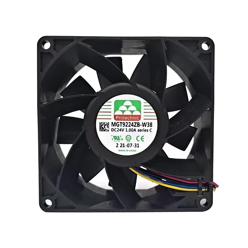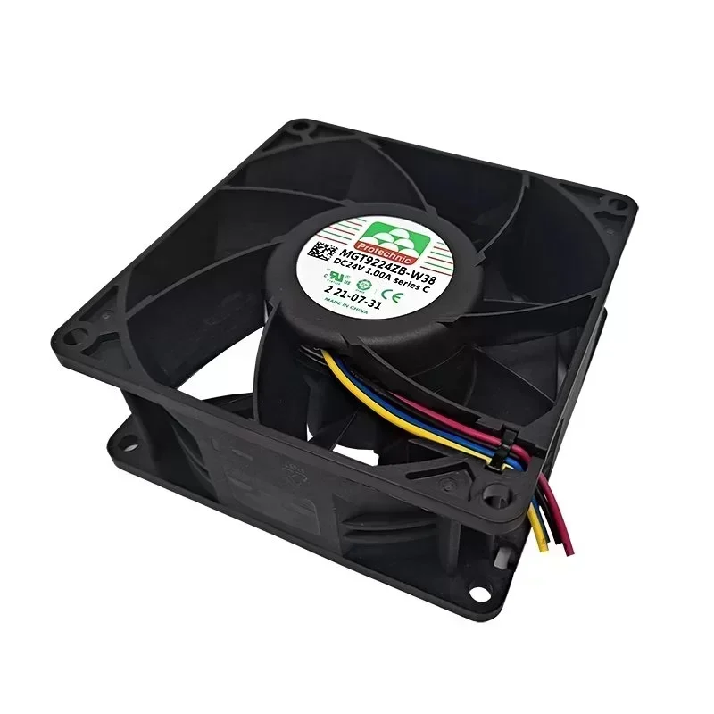 Protechnic PWM Fan MGT9224ZB-W38 C 24V DC 1A 92*92*38mm 6000RPM 148.79CFM Axial Flow Electric Plastic ODM Silent Exhaust Ball