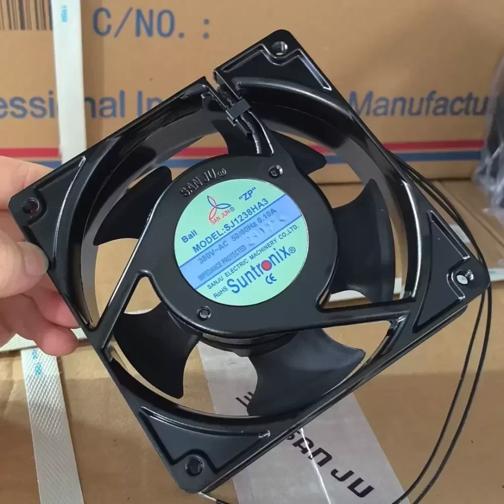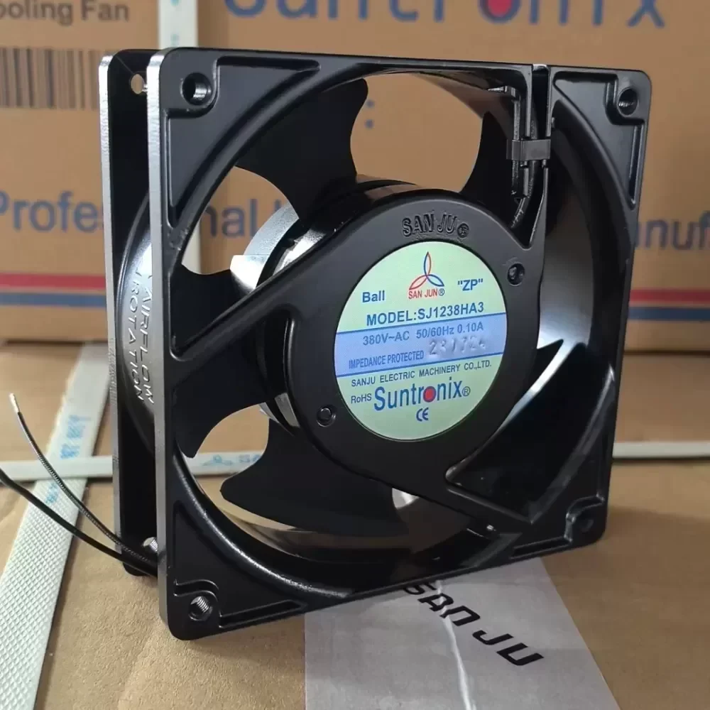 The SAN JUN SJ1238HA3 is a high-performance industrial axial fan engineered by Taiwan Three Giant for demanding thermal management applications. Designed specifically for high-voltage environments, this 380 – 400 VAC unit provides reliable heat dissipation for electrical cabinets, server chassis, and industrial control panels. The integration of premium double ball bearings ensures extended service life and stable operation under continuous duty cycles. This original engineering component is critical for maintaining optimal operating temperatures in heavy-duty machinery and power distribution systems where standard voltage fans are insufficient. Optimized for rapid integration with standard industrial lead times, this fan ensures minimal downtime for maintenance cycles.