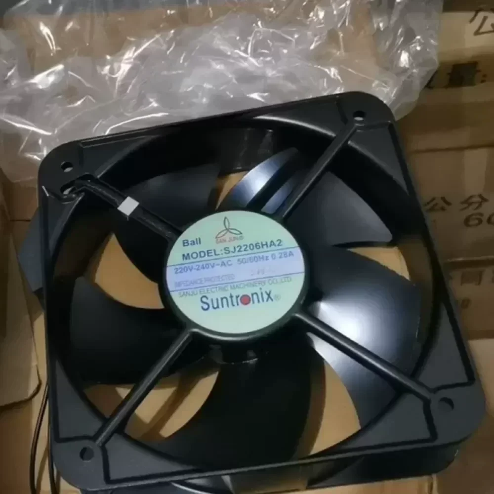 The Taiwan Sanju SJ2206HA2 is a robust AC axial fan engineered for high-capacity thermal regulation in industrial machinery and power distribution systems. Designed with a heavy-duty die-cast aluminum frame and a metal impeller, this model withstands harsh operating environments while delivering superior airflow performance. The fan utilizes a capacitor-run induction motor optimized for 220V/240V AC operation, ensuring consistent rotational stability and longevity. Its square form factor allows for seamless integration into standard ventilation panels and server cabinets, providing a reliable solution for critical cooling requirements.