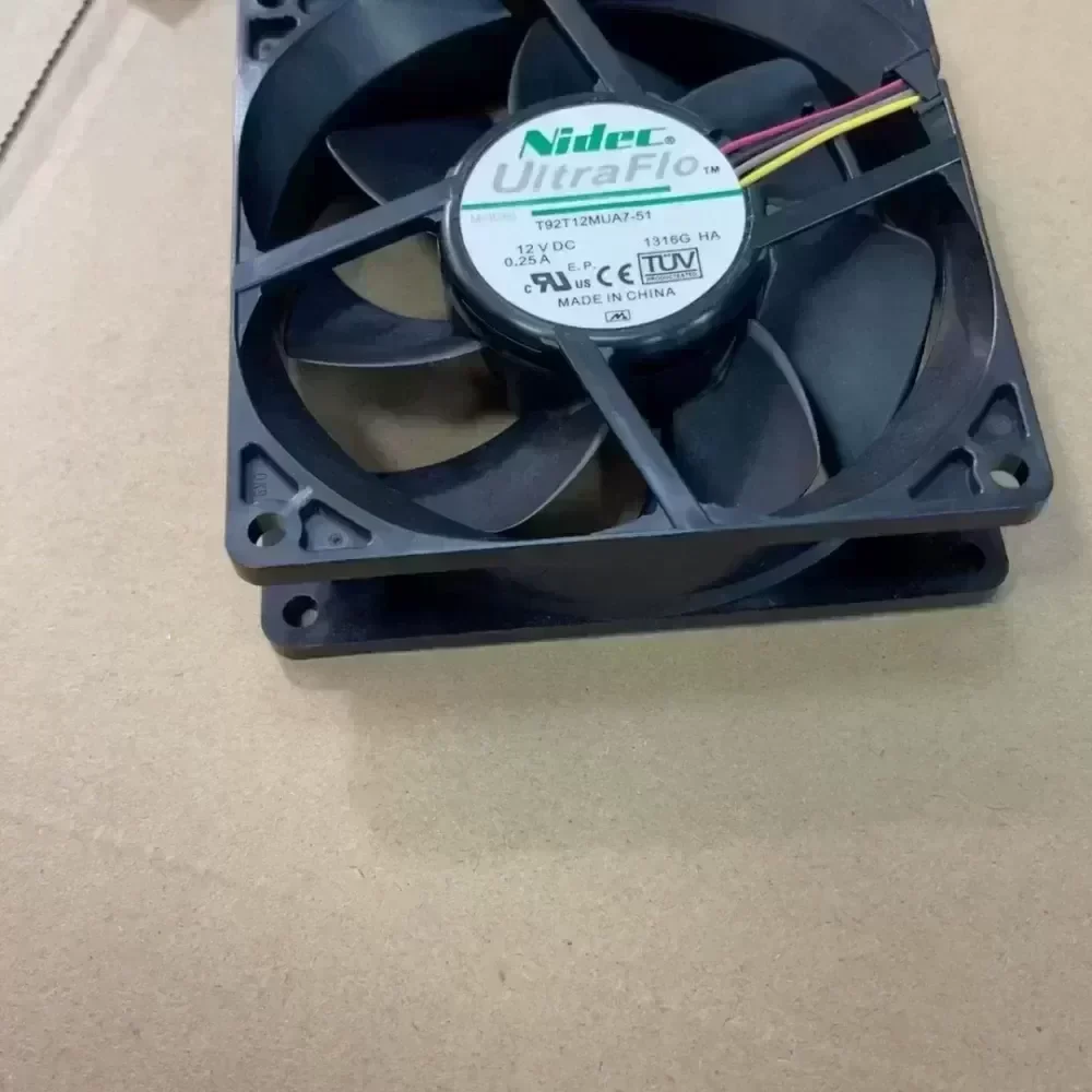 Sell Nidec UltraFlo T92T12MUA7-51 cooling fan, 12V DC, 0.25A, 90mm × 90mm × 25mm size. This fan supports PWM function, has large air volume and low sound, and is suitable for cooling chassis and CPU. The color is brand new, the functions are intact and there is no maintenance. Friends in need can contact me for free shipping!