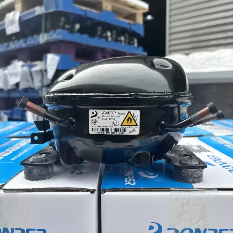 The Donper VFA090CY1 is a high-efficiency variable speed refrigeration compressor engineered for advanced thermodynamic cycles utilizing R600a (Isobutane) refrigerant. This unit features a Brushless DC (BLDC) motor architecture capable of modulating operating speeds between 40Hz and 150Hz, allowing for precise load matching and significant energy reduction compared to fixed-speed alternatives. The wide voltage input range of 65-180V ensures robust operational stability in environments with fluctuating electrical grids, preventing stall conditions during brownouts. Designed for Low Back Pressure (LBP) applications, this compressor integrates seamlessly with modern inverter drive boards to minimize temperature hysteresis in household refrigerators and precision medical cooling units. Ensure Technical Compatibility with the specific electronic control unit (ECU) prior to installation. Contact us for current Lead Time and Original Engineering specifications for bulk procurement.